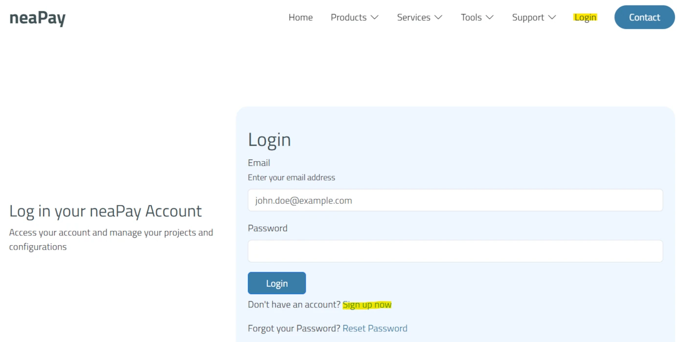 Primero, accede a la web de Neapay pulsando el en botón que tienes justo encima.