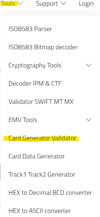 Simplemente vete al menú superior «Tools» y pulsa en la opción «Card Generator Validator«.